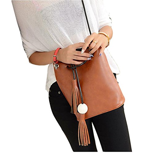 The Creazy 2016 Women Tassel Leather Satchel Handbag Shoulder Tote Messenger Crossbody Bag (Brown) it you must have for brown leather handbags.