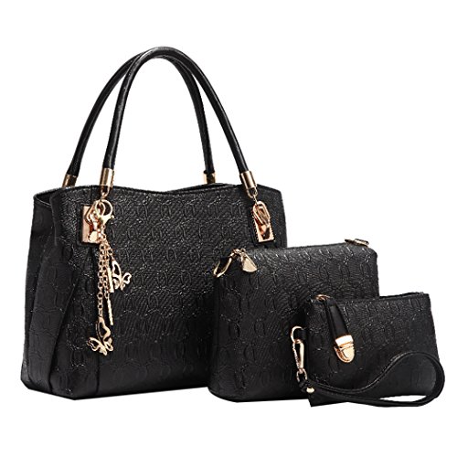 You can read main features below to know more about Deluxe Women 3 Piece Tote Bag Pu Leather Handbag Purse Bags Set (Black).