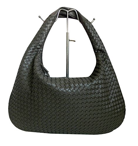 The ILISHOP Hot Sale Women's Classic Italian Intricate Woven Large Flat Hobo Handbag Shoulder Bag (Dark-grey) it you must have for italian leather handbags .