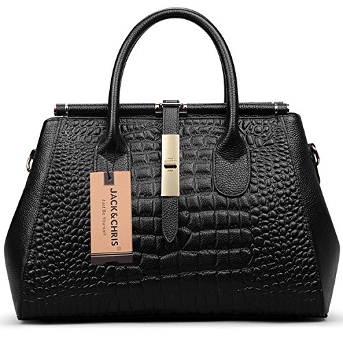 The Jack&Chris® Women Genuine Leather Crocodile Grain Shoulder Bag Top-handle Tote, WBDZ024 (Black) it you must have for black leather handbags.