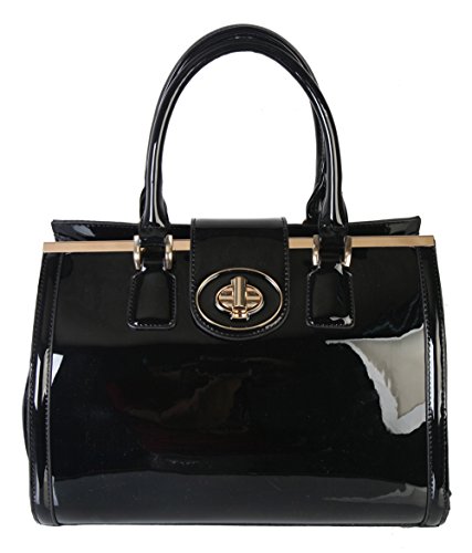 The Rimen & Co. Larger Shiny Patent Handbag With Gold Metal Turn-lock Woman Handbag Accented With Removable Strap LP-2524 Black it you must have for patent leather handbags.