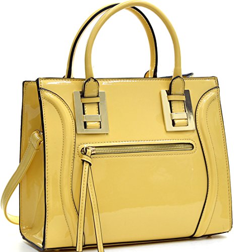 The Dasein Structured Patent Leather Satchel, Tote Handbag with Zipper Front Pocket - Yellow it you must have for patent leather handbags.